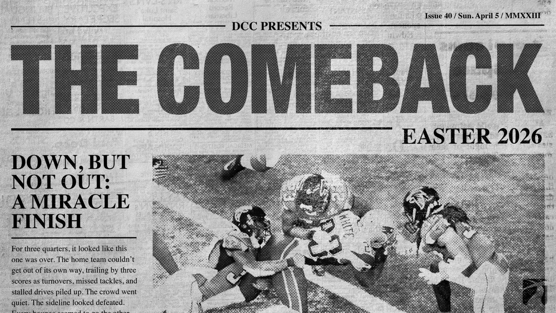 This series will culminate on Easter Sunday as we celebrate the resurrection of Jesus, the greatest comeback in history, and discover the hope and new beginning God offers.